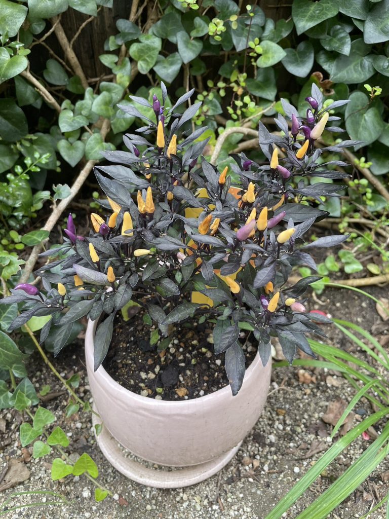 それから、ハロウィンの雰囲気を感じたいと思い、紫と黄色の唐辛子のような苗を鉢に植えてみたり、魔女が出てくる絵本を読んだり、映画「ウィキッド 二人の魔女」も観ました。