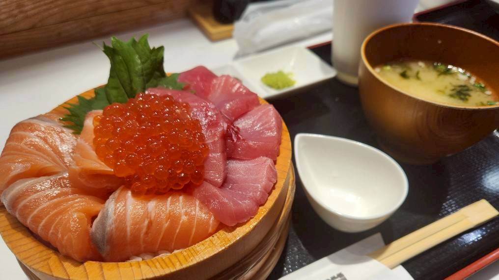 私はいくらとサーモン、マグロの盛り合わせを注文しました☆