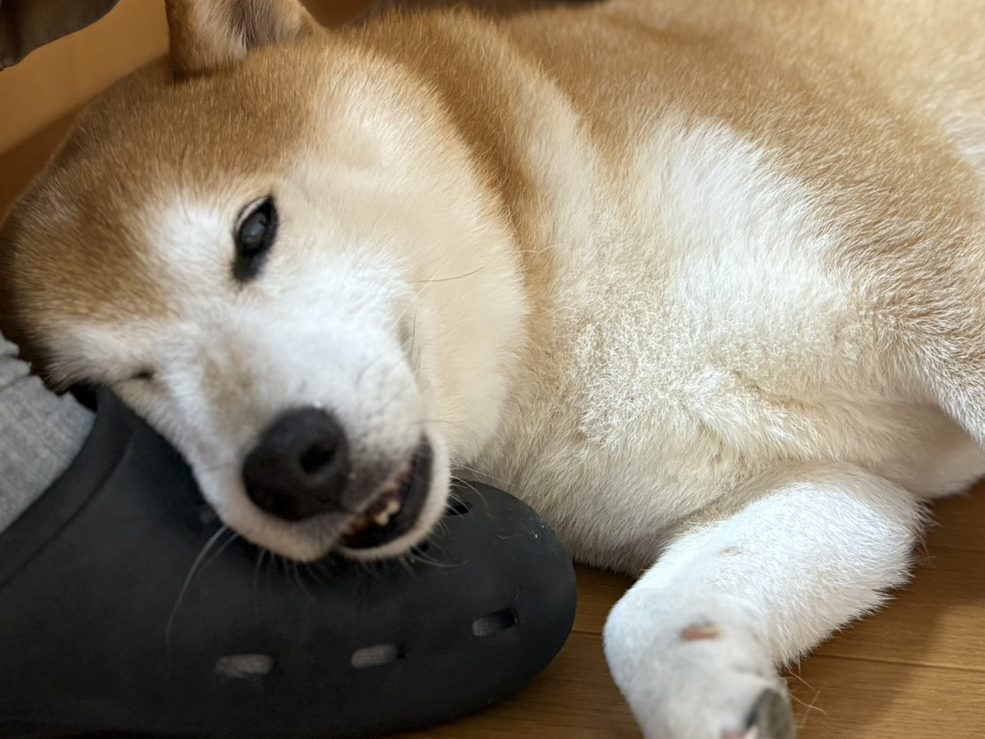 ↑クロックスを枕代わりにウトウトしているMちゃん💤